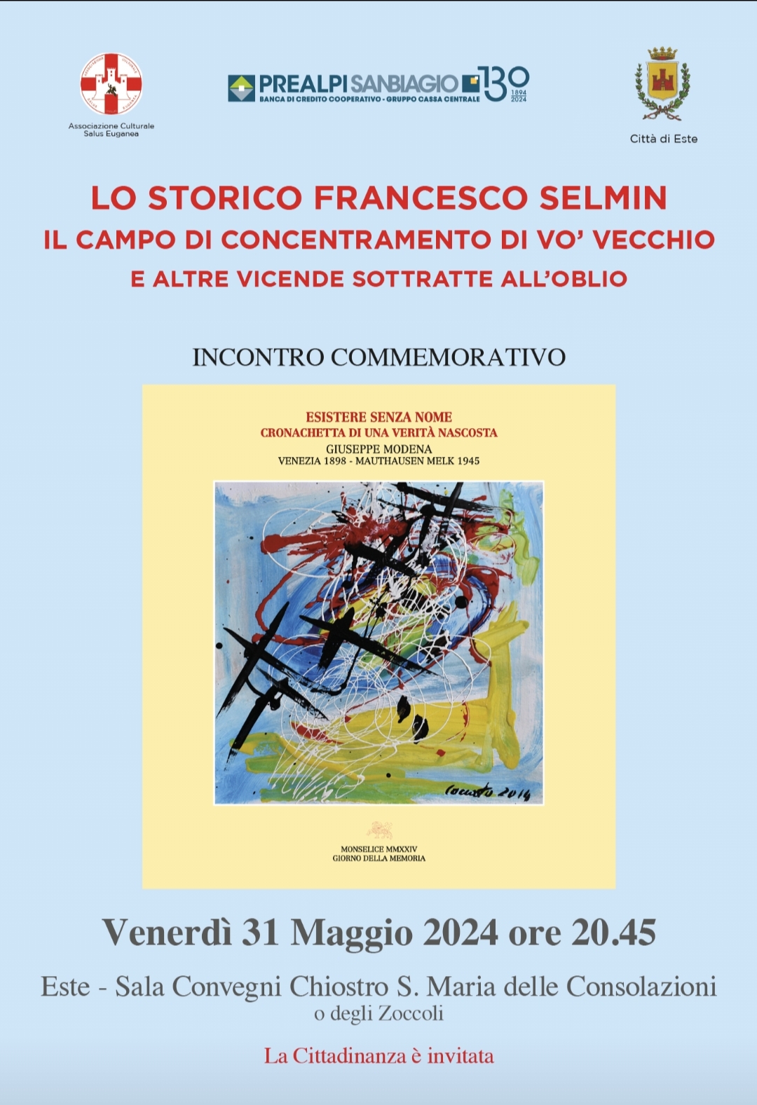 L' Amministrazione Comunale di Monselice si è fatta promotrice di plurime iniziative, affidandone la puntuale organizzazione all' Assessorato alla Cultura e, nel caso specifico, all' Associazione Culturale Salus Euganea Onlus. La Mostra documentaria