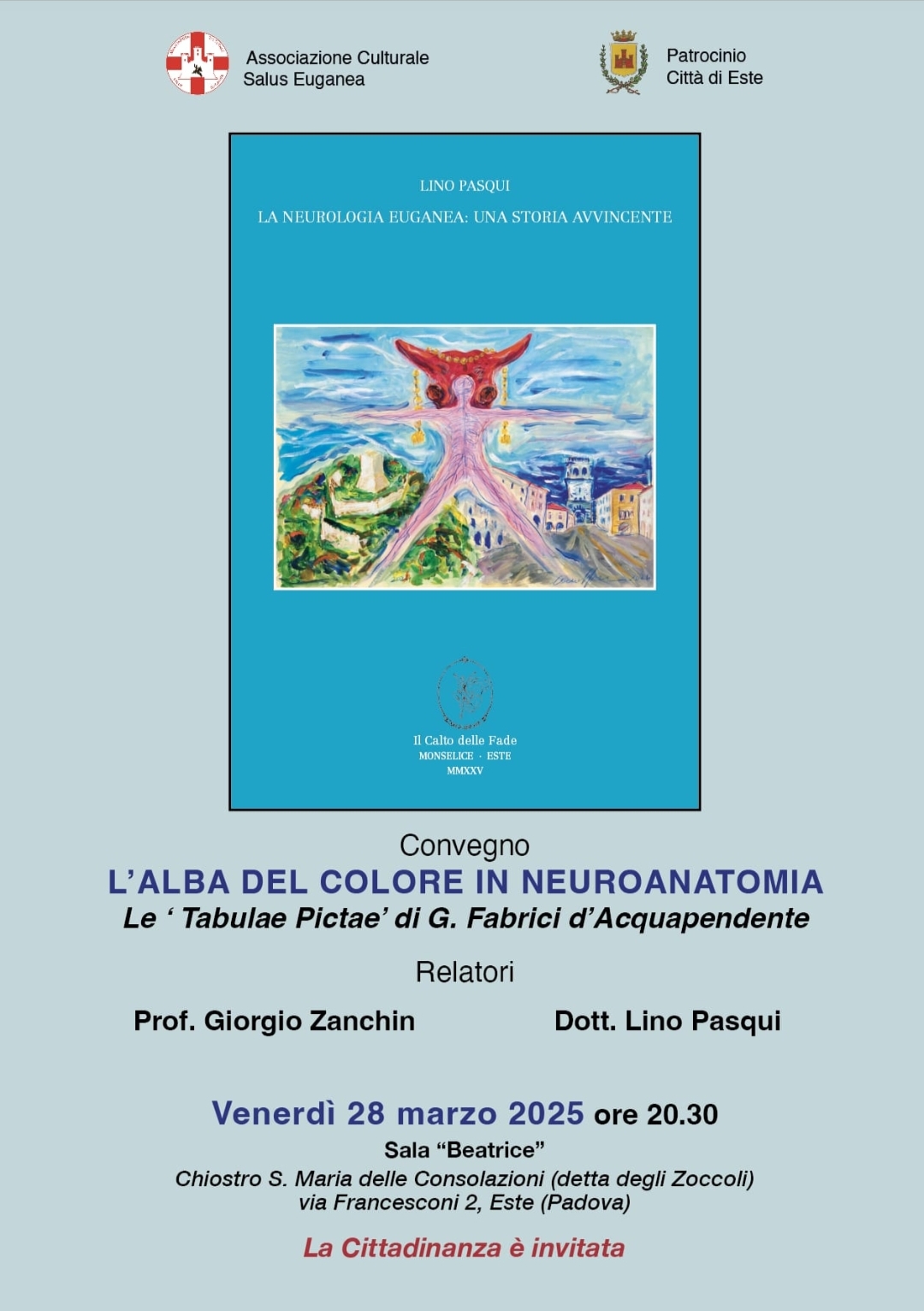 Venerdì 28 marzo 2025 presentiamo a Este, in occasione dei 50 anni dalla nascita della Neurologia, il libro che non è solo la storia dei reparti di Monselice e Este ma anche il ricordo delle numerose iniziative sorte all'epoca come l'Associazione Medico Chirurgica Euganea a cui hanno aderito i medici ospedalieri e i medici di medicina generale per una crescita culturale e una integrazione del lavoro sempre in funzione della persona malata. Ne sono nati incontri, opuscoli divulgativi che hanno avuto il plauso dell'Ordine dei Medici e delle Società Scientifiche. Attiva la collaborazione con le Associazioni del territorio in particolare AICE, AIMAD e AISM.