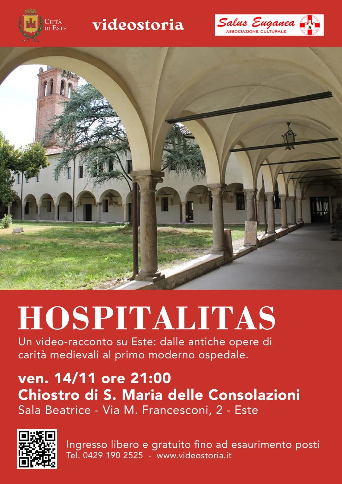 Presentazione di una importante ricerca storica con documenti e foto inedite sulla cultura dell’assistenza e della cura alle persone bisognose, che ha antiche e profonde radici nel passato del territorio euganeo. I primi luoghi di ricovero per gli ammalati, per i poveri e per i pellegrini sono sorti presso i monasteri e le chiese. Poi la svolta avvenuta nel 1769 quando la Magnifica Comunità di Este acquista il Convento e la Chiesa di Santa Maria delle Consolazioni e le trasforma nel primo Ospedale. Da allora la struttura subisce molte modifiche fino alla riqualificazione e al radicale ampliamento con il nuovo monoblocco inaugurato nel 1984.